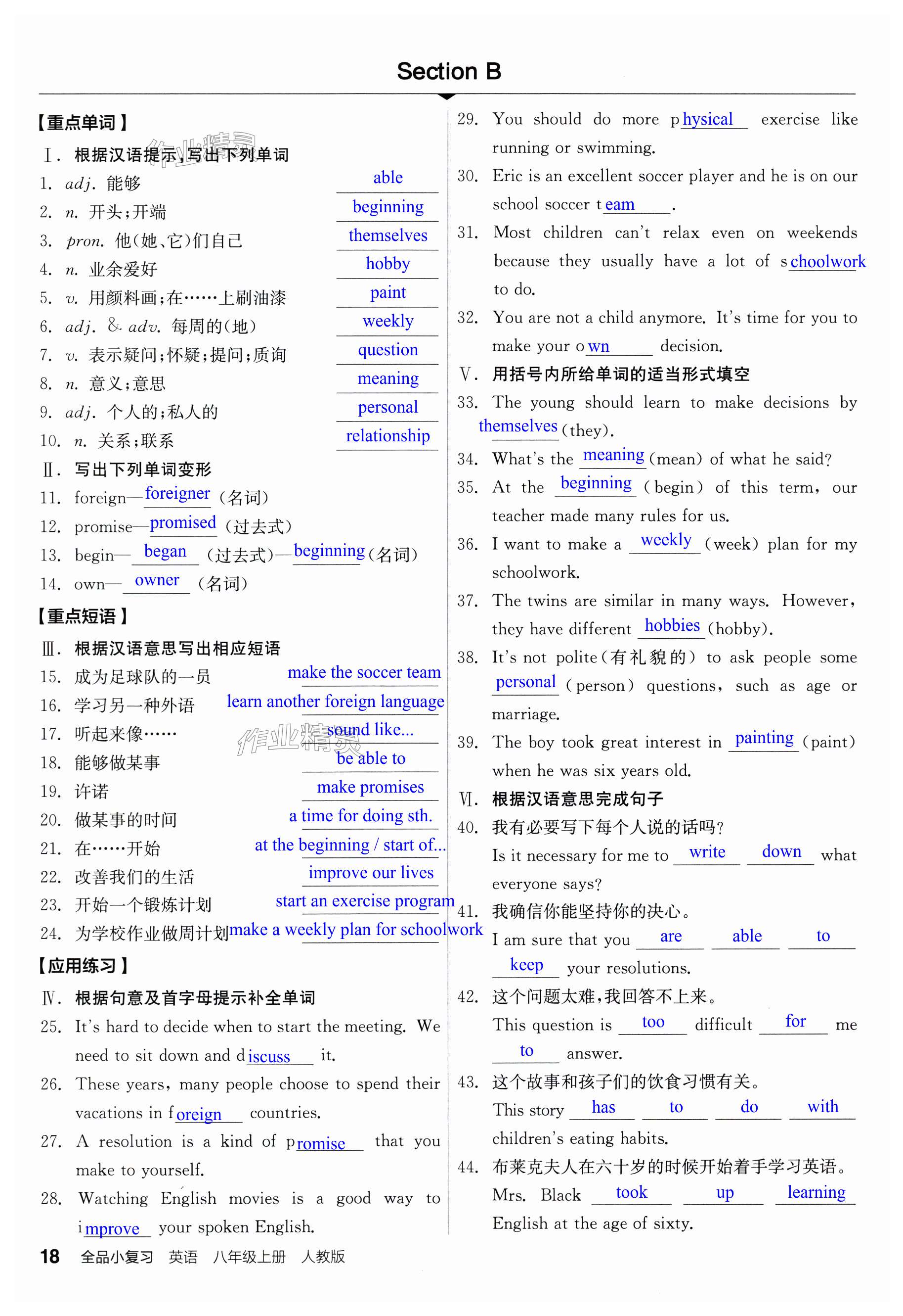 注:目前有些书本章节名称可能整理的还不是很完善,但都是按照顺序排列的,请同学们按照顺序仔细查找。练习册 2024年全品小复习八年级英语上册人教版宁夏专版 答案主要是用来给同学们做完题方便对答案用的,请勿直接抄袭。