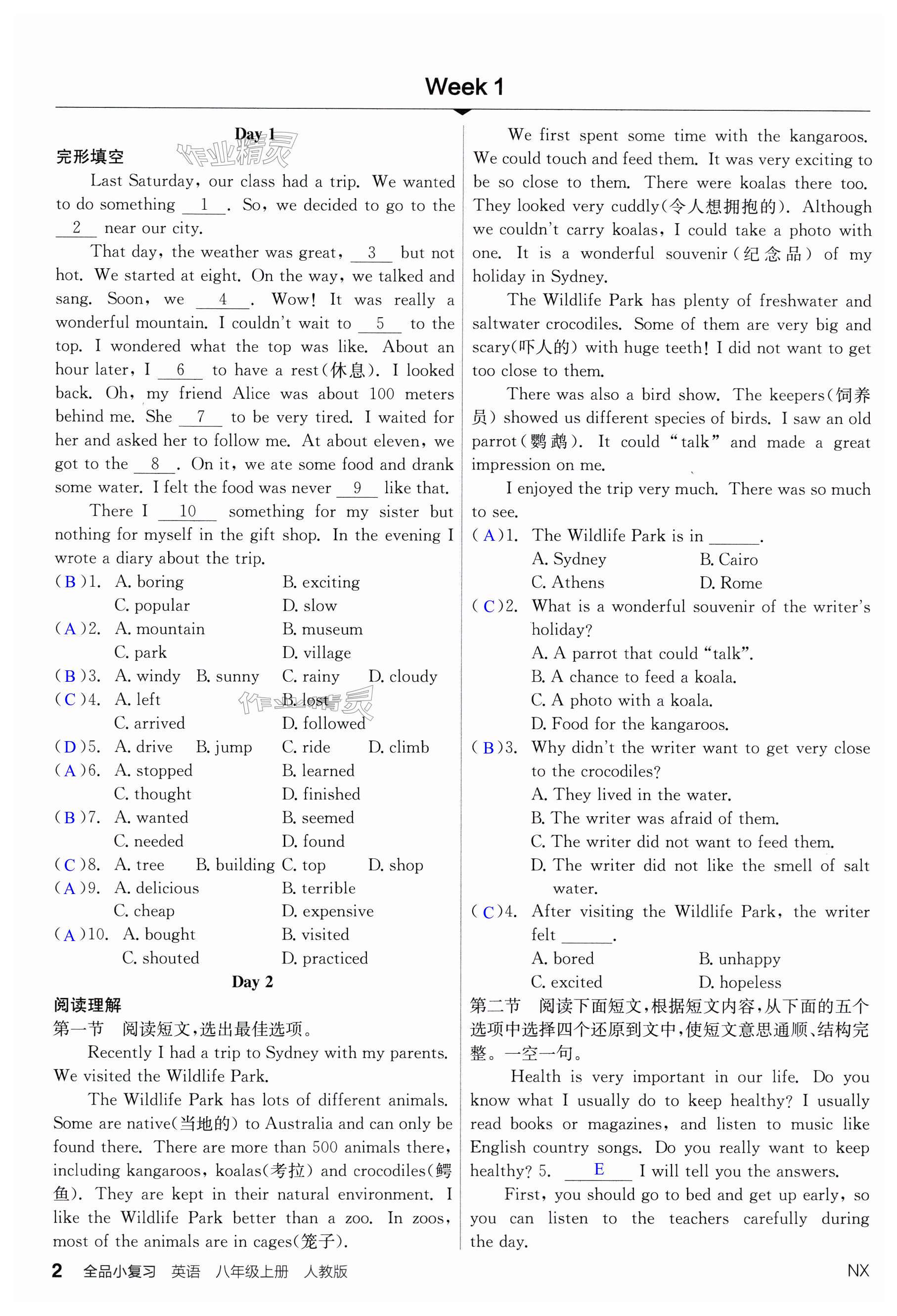 注:目前有些书本章节名称可能整理的还不是很完善,但都是按照顺序排列的,请同学们按照顺序仔细查找。练习册 2024年全品小复习八年级英语上册人教版宁夏专版 答案主要是用来给同学们做完题方便对答案用的,请勿直接抄袭。