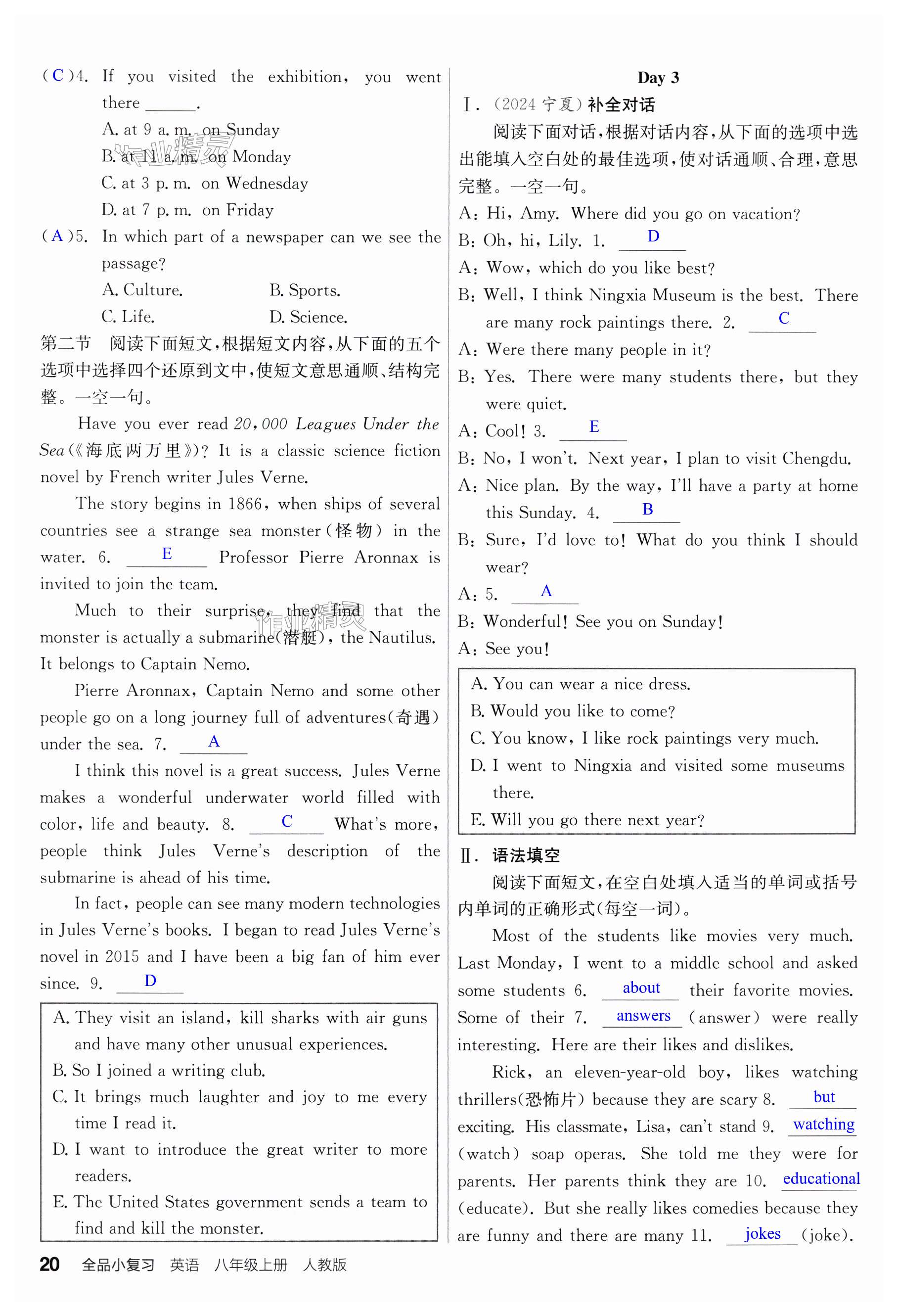 注:目前有些书本章节名称可能整理的还不是很完善,但都是按照顺序排列的,请同学们按照顺序仔细查找。练习册 2024年全品小复习八年级英语上册人教版宁夏专版 答案主要是用来给同学们做完题方便对答案用的,请勿直接抄袭。