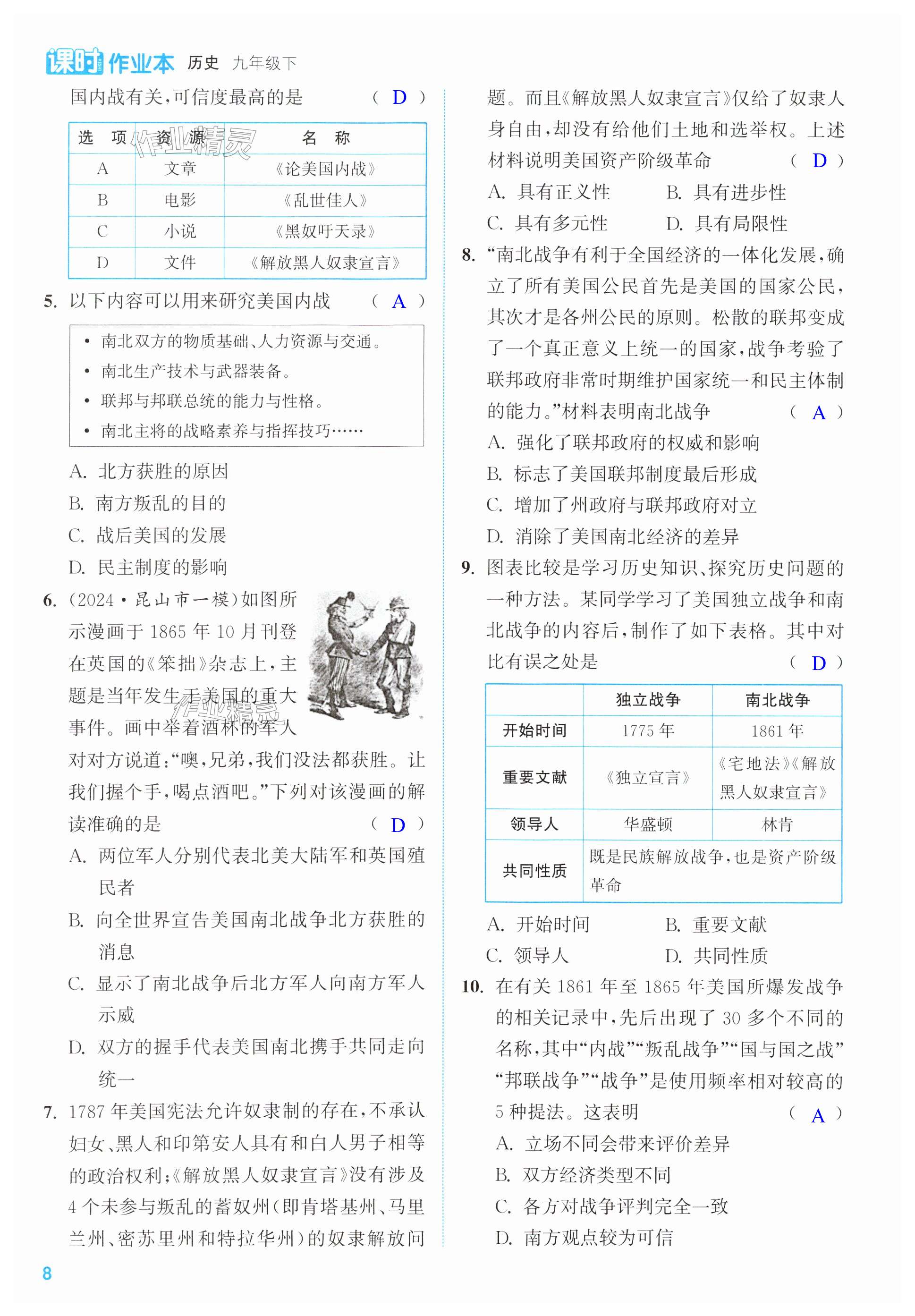 注:目前有些书本章节名称可能整理的还不是很完善,但都是按照顺序排列的,请同学们按照顺序仔细查找。练习册 2025年通成学典课时作业本九年级历史下册人教版苏州专版 答案主要是用来给同学们做完题方便对答案用的,请勿直接抄袭。