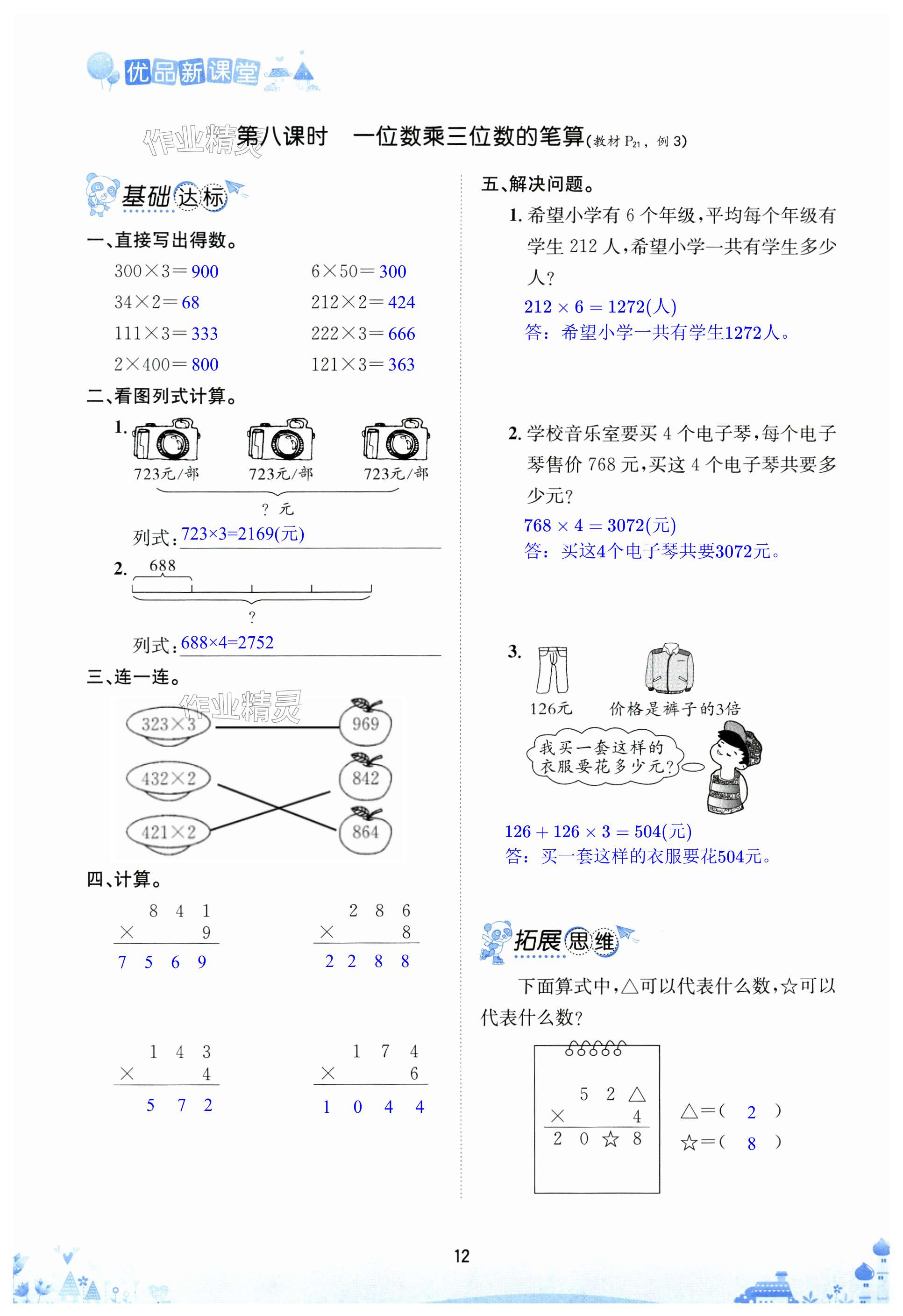 注:目前有些书本章节名称可能整理的还不是很完善,但都是按照顺序排列的,请同学们按照顺序仔细查找。练习册 2024年优品新课堂小学数学三年级上册西师大版 答案主要是用来给同学们做完题方便对答案用的,请勿直接抄袭。