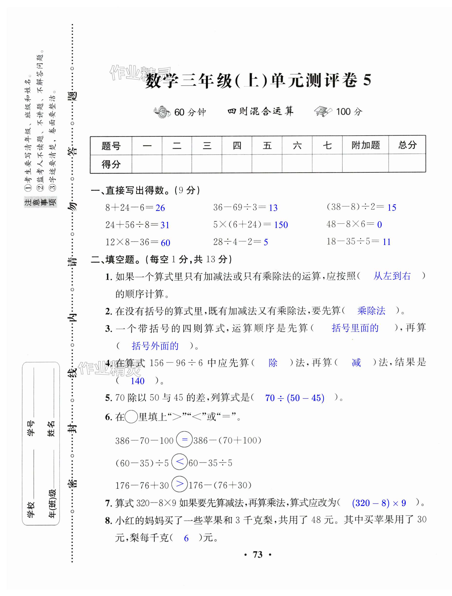 注:目前有些书本章节名称可能整理的还不是很完善,但都是按照顺序排列的,请同学们按照顺序仔细查找。练习册 2024年优品新课堂小学数学三年级上册西师大版 答案主要是用来给同学们做完题方便对答案用的,请勿直接抄袭。