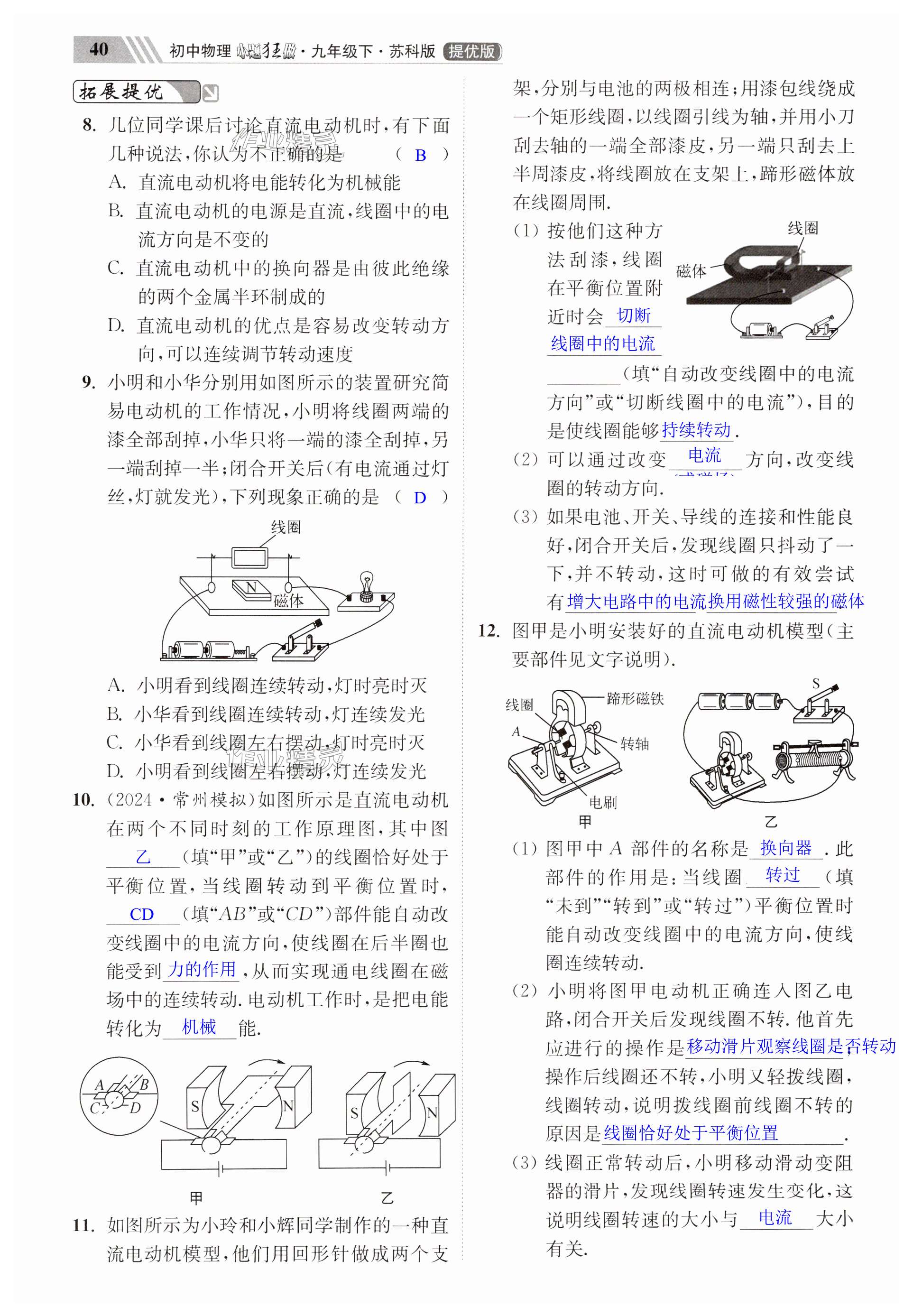 注:目前有些书本章节名称可能整理的还不是很完善,但都是按照顺序排列的,请同学们按照顺序仔细查找。练习册 2025年小题狂做九年级物理下册苏科版提优版 答案主要是用来给同学们做完题方便对答案用的,请勿直接抄袭。
