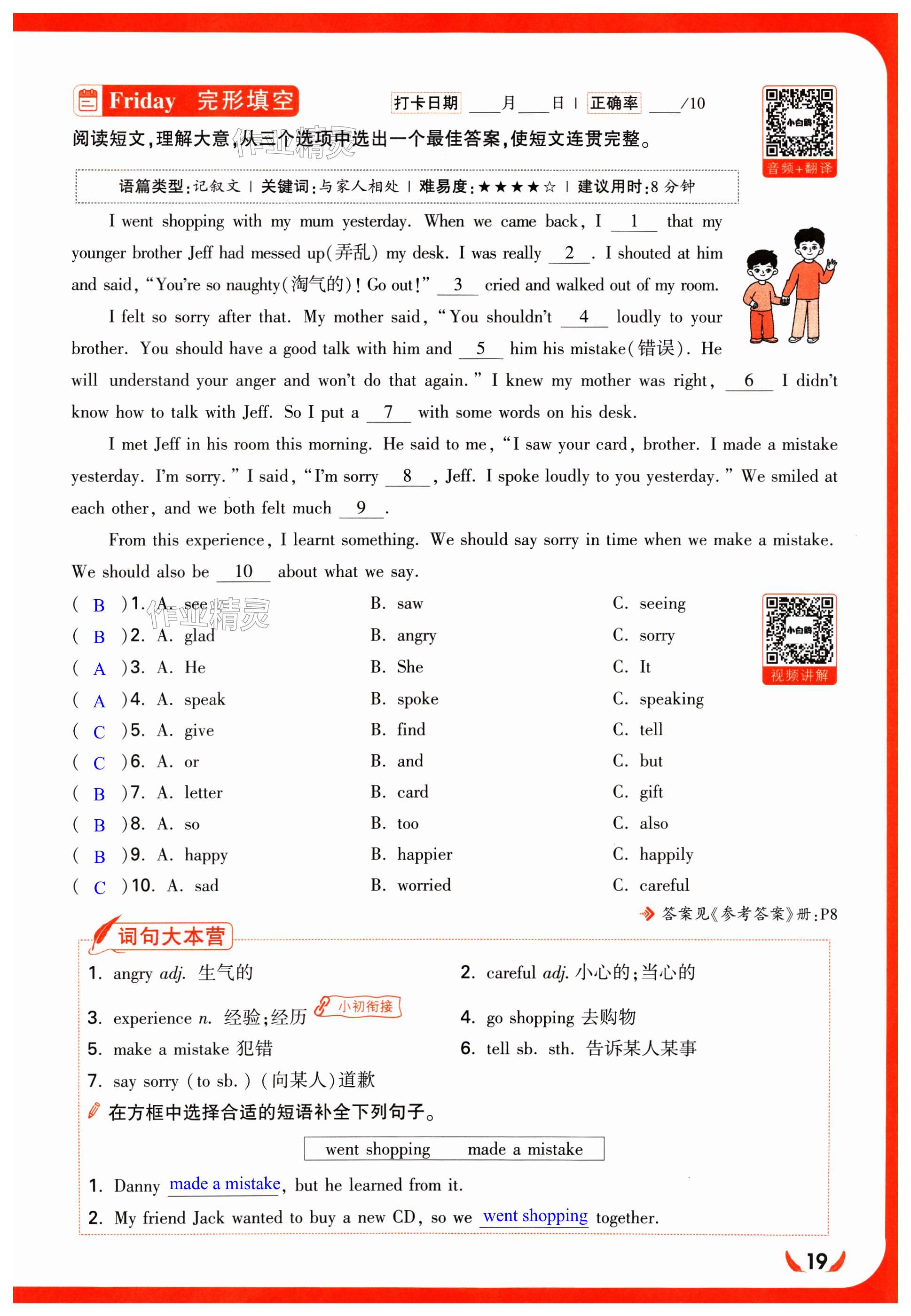 2024年小白欧阅读理解完形填空天天练六年级英语译林版