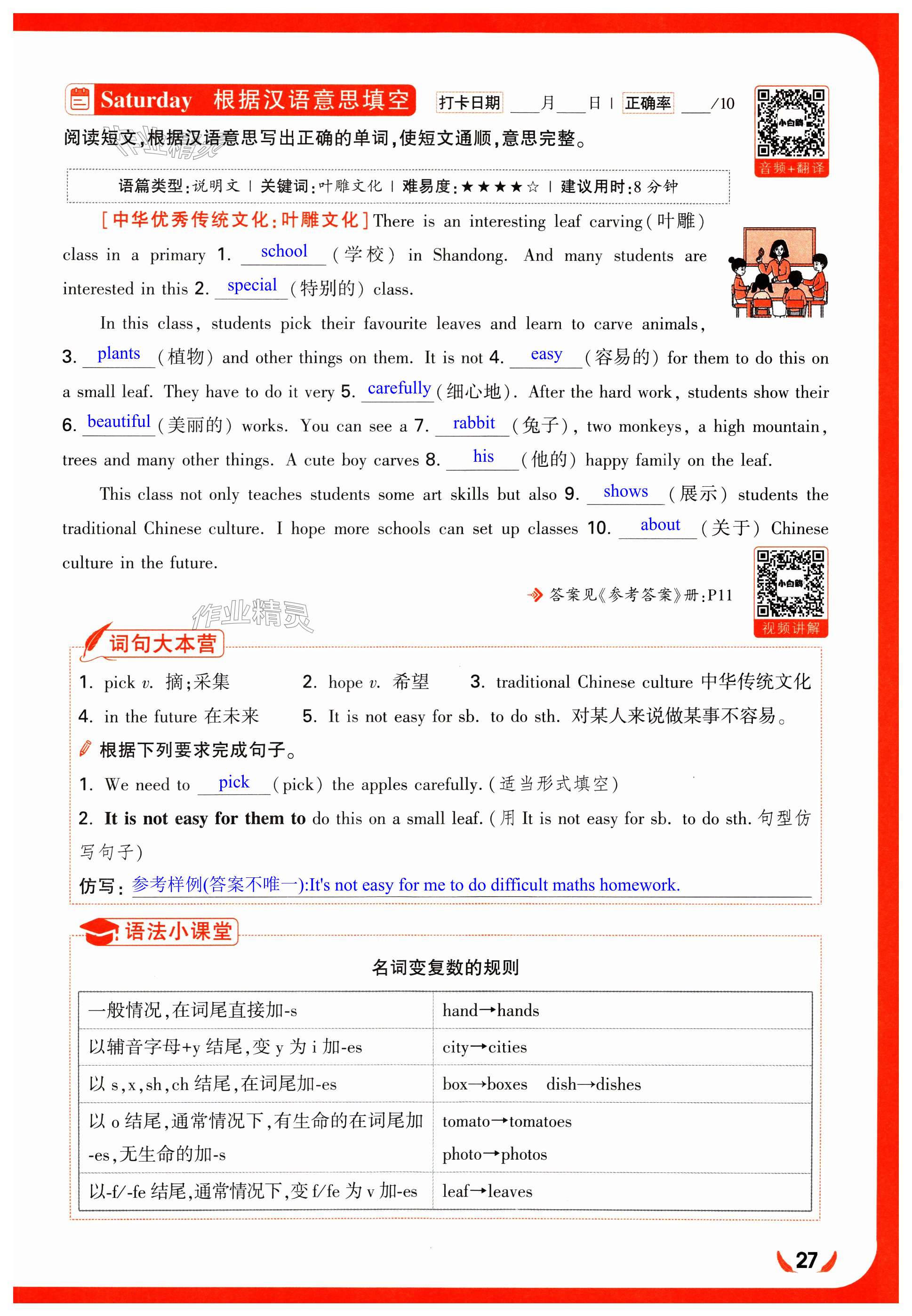 注:目前有些书本章节名称可能整理的还不是很完善,但都是按照顺序排列的,请同学们按照顺序仔细查找。练习册 2024年小白欧阅读理解完形填空天天练六年级英语译林版 答案主要是用来给同学们做完题方便对答案用的,请勿直接抄袭。
