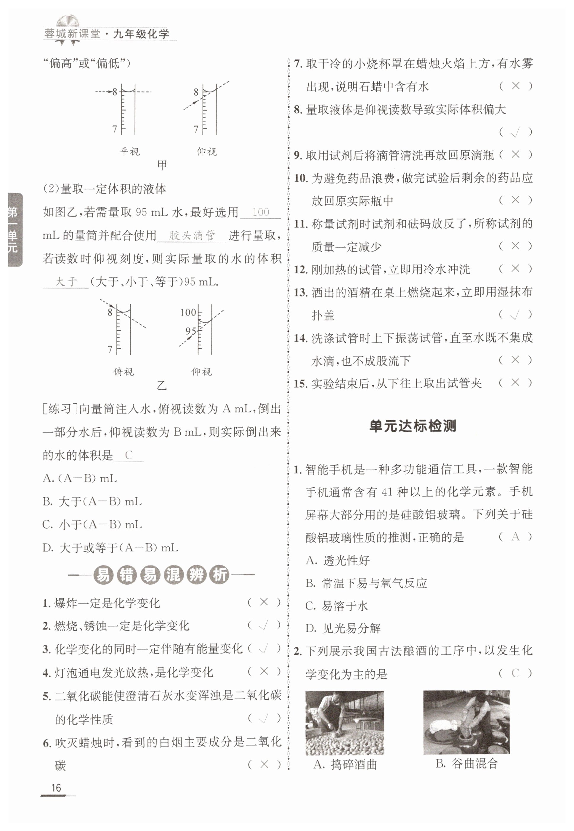 注:目前有些书本章节名称可能整理的还不是很完善,但都是按照顺序排列的,请同学们按照顺序仔细查找。练习册 2024年蓉城新课堂九年级化学全一册人教版 答案主要是用来给同学们做完题方便对答案用的,请勿直接抄袭。