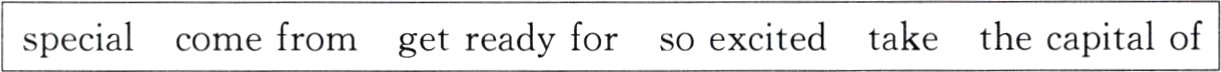 1. get ready for 2. take 3. comes from 4. special 5. the capital of