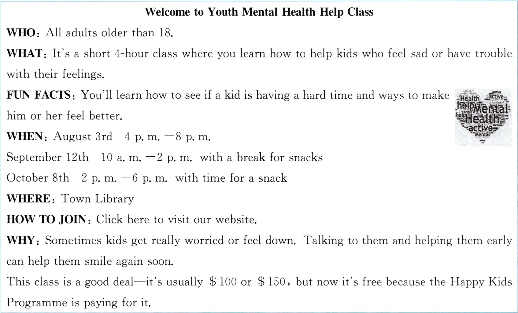 WHAT: It's a short 4 - hour class where you learn how to help kids who feel sad or have trouble with their feelings.