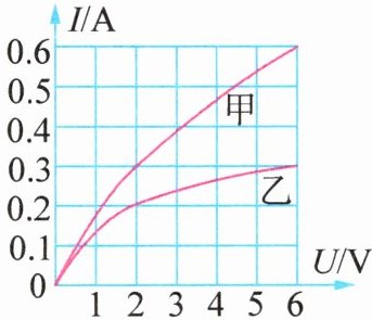 3. 额定电压均为 6 V 的甲、乙两灯,I - U 图像如图所示. 下列说法正确的是 ( )