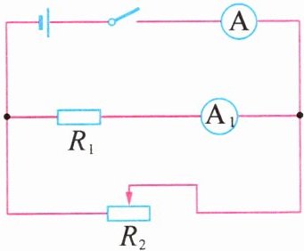 **解析**:由图可知,$R_{1}$和$R_{2}$并联,电流表A测干路电流,电流表$A_{1}$测通过$R_{1}$的电流。