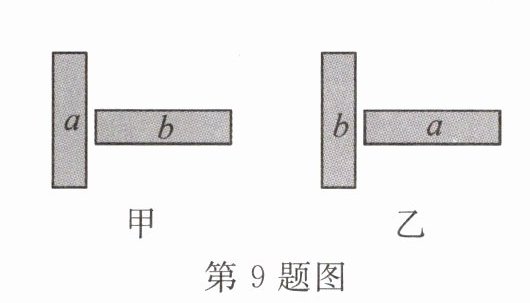 9. 如图是两根外形完全相同的钢棒a和b,按图甲方式放置时,它们能够相互吸引;按图乙方式放置时,它们之间感觉不出有相互作用力. 则可知 ( )