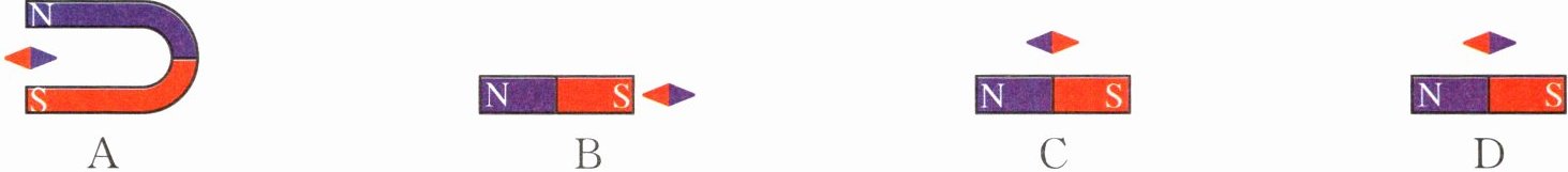 7. 下列图中,小磁针蓝色的一端表示N极. 将小磁针放在磁体周围,它们静止不动时,N极指向正确的是 ( )