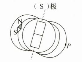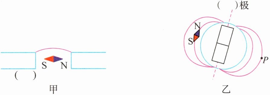 (2)(2024·江苏南京月考)如图乙所示,地球是一个天然的大磁体,类似条形磁体,请在图中括号处标出地磁场的磁极,并用箭头标出 P 点的磁感线方向.