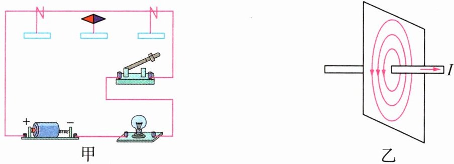 10. 如图甲所示,探究“通电直导线周围的磁场”时,将一根直导线放在静止小磁针的正上方,并与小磁针平行.
