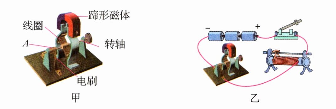 3. 如图甲是小明安装好的直流电动机模型.