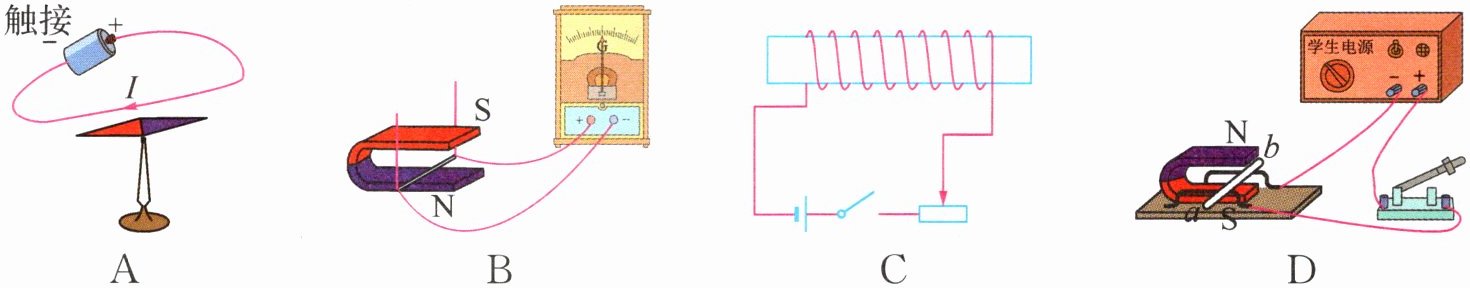 6. (2024·江苏苏州)如图所示,在$a$、$b$两端接入电源或电流表组成不同装置,以下正确的是 ( )