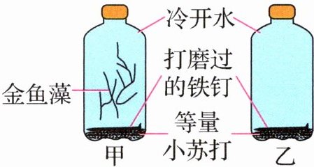 8. 新趋势 学科融合(2024·河南信阳模拟)某同学用右下图所示的装置进行铁锈蚀条件的探究。两个透明塑料瓶中均装满冷开水(煮沸后迅速冷却的水),并将其放在阳光下照射(已知小苏打溶液在升高温度后会分解产生二氧化碳)。下列说法错误的是 ( )