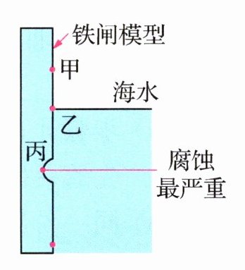 10. 新素养 科学思维 金属制品在海水(主要含有氯化钠和水)中容易发生锈蚀,海水中铁闸不同部位的腐蚀情况如右下图所示。