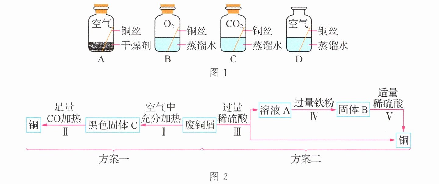 【拓展探究】以锈蚀严重的废铜屑为原料回收制取纯铜,图2是两种实验方案。