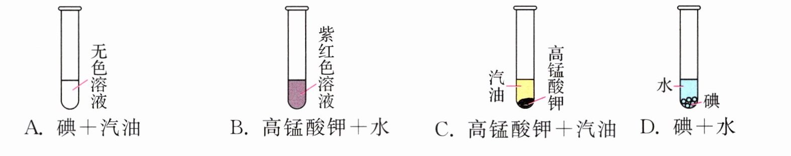 A 【解析】碘溶于汽油形成有色(在紫色到棕色范围内)溶液,故A错误。