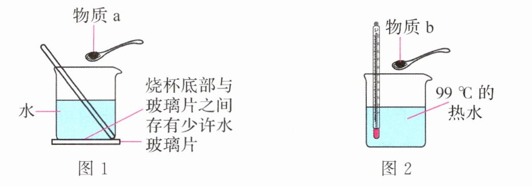 【实验探究】某探究小组的同学设计了下图所示的两种方案。在图 2 所示方案中,每次加入物质 b 之前均使用温度计控制热水温度,使之保持在 99 ℃。