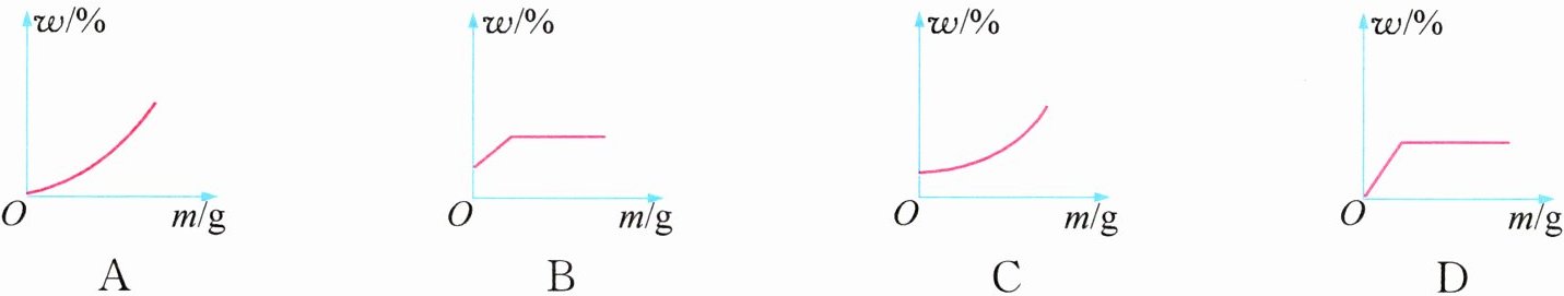 3. 某温度下,向一定量的水中不断加入食盐并搅拌,下图能正确表示加入食盐的质量(m)与所得溶液中溶质的质量分数(w)关系的是 ( )