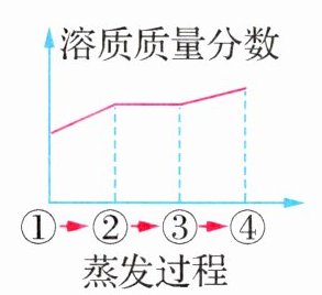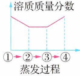 8.(2024·福建福州模拟)下图所示为蒸发氯化钠溶液的过程,其中①→②→③为恒温蒸发过程,③→④为升温蒸发过程,溶液②恰好为饱和状态,下列溶液质量分数与蒸发过程描述正确的是 ( )