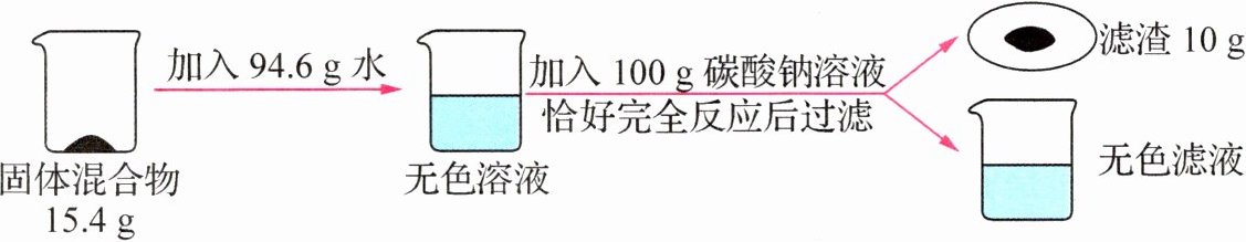 所得溶液中溶质的质量分数为$\frac{15.4\ g - 11.1\ g + 11.7\ g}{15.4\ g + 94.6\ g + 100\ g - 10\ g}×100\% = 8\%$