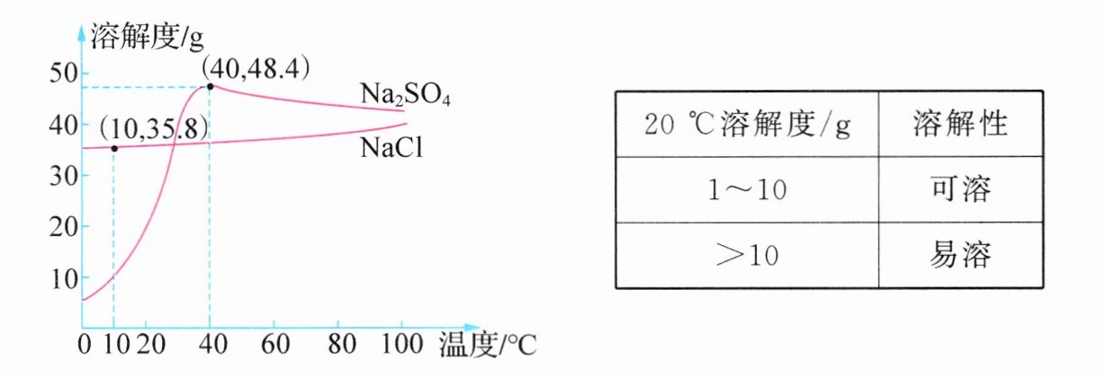7. (2024·内蒙古呼和浩特)$NaCl$在自然界分布很广,海水、盐湖、盐井和盐矿都是$NaCl$的来源。在地下千米左右的某盐矿储量巨大,$85\%$是$NaCl$,还含有少量$Na_2SO_4$等。结合物质的溶解性及$NaCl$和$Na_2SO_4$的溶解度曲线,回答下列问题。