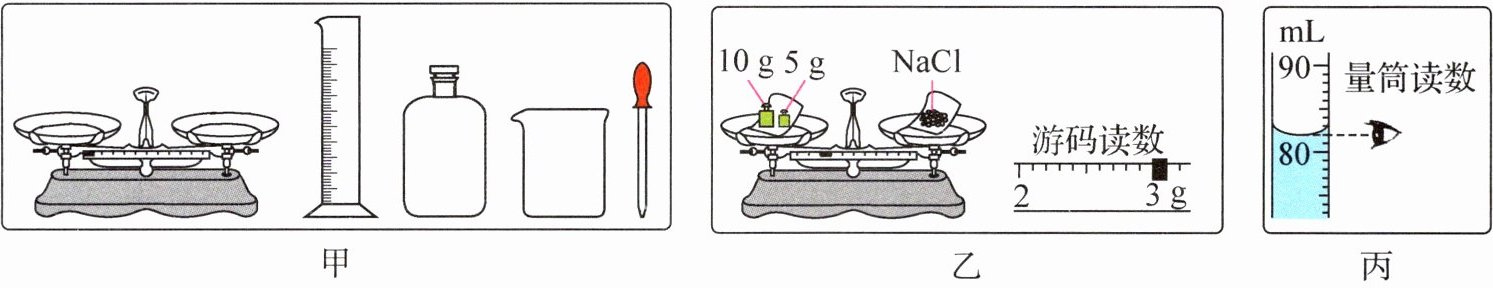 (3)量取蒸馏水的体积时,读数如图丙所示,则该实验小组实际配制的氯化钠溶液的溶质质量分数为(水的密度为1 g/cm³)________(结果精确到0.1%),比计划配制的溶质质量分数偏________(填“大”或“小”)。