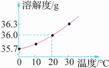 (2)用化学知识能很好地解释古人的制盐工艺。右图为氯化钠的溶解度曲线,20℃时氯化钠的溶解度为___________g。此温度下,将9 g氯化钠溶解到25 g水中,可配得氯化钠的_________(填“饱和”或“不饱和”)溶液;保持温度不变,蒸发部分溶剂,该溶液中溶质的质量分数________(填“变大”“变小”或“不变”)。