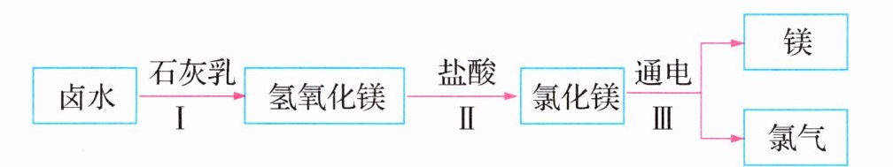 (3)海水提取出粗盐后的母液(卤水)中,还含有较多的氯化镁,在工业上用卤水和石灰乳为原料制备金属镁的转化过程如下图所示。