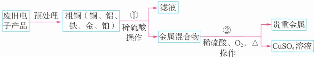 14. (2024·新疆昌吉模拟)从某废旧电子产品中可以提炼贵重金属并得到硫酸铜溶液。工艺流程如下图所示。