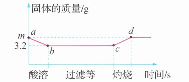 13. (2023·江苏镇江期末)已知金属与$O_{2}$反应生成氧化物,向一定量铜、镁混合粉末中加入足量的稀硫酸,充分反应后过滤,将洗净的滤渣在$O_{2}$中充分灼烧。实验中固体质量的变化如下图所示。下列说法正确的是 ( )