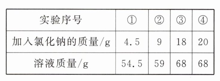 (1)将纯净的氯化钠固体配制成溶液,20 ℃时,向4个盛有50 g水的烧杯中,分别加入一定质量的氯化钠并充分溶解。4组实验数据如下表所示。