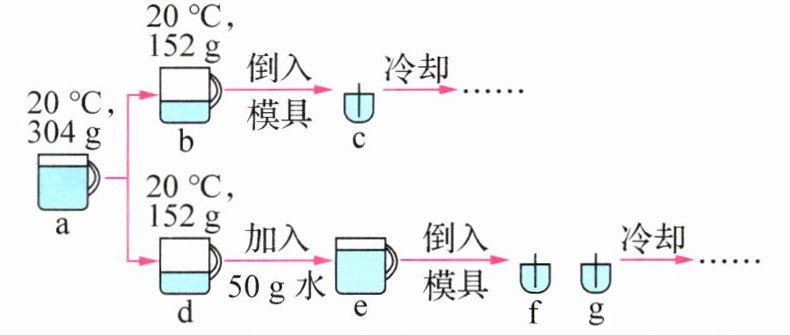 20 ℃时,取100 g水,加入204 g蔗糖配制出304 g蔗糖饱和溶液,二人将配好的溶液均分为两份,各自倒出152 g溶液,按下图方案(部分流程省略)分别制作冰棍。