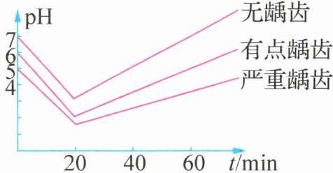 (1)小丽发现龋齿会影响葡萄糖在嘴中转化为乳酸,如右图所示,在第________ min时,葡萄糖全部转化为乳酸,龋齿越严重,pH越________。