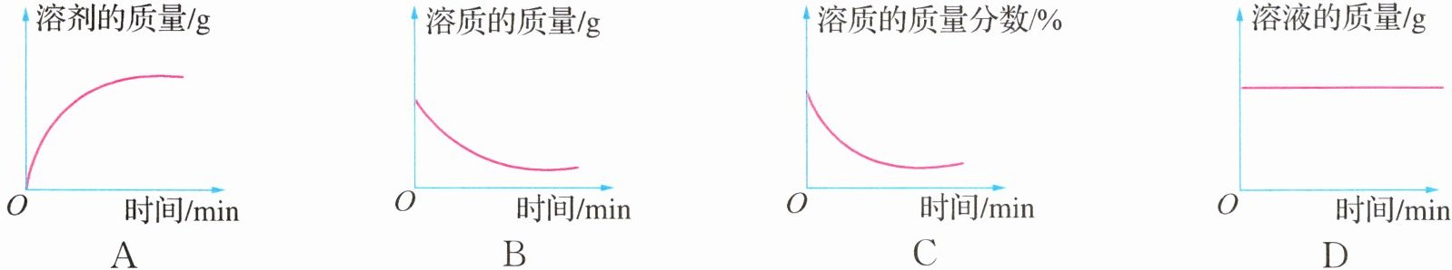 7. 将实验室的浓硫酸、浓盐酸敞口放置一段时间后,下图中能同时符合两溶液变化情况的是 ( )