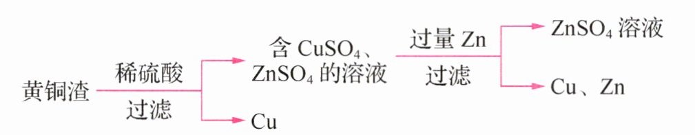 4. (2024·江苏连云港)一种以黄铜渣(含 Zn、Cu、ZnO、CuO)为原料获取 Cu 和 ZnSO₄溶液的实验流程如下图所示。下列说法正确的是( )
