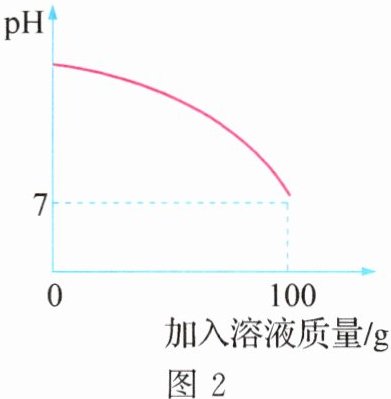 (3)用溶质质量分数为$7.3\%$的稀盐酸处理$80 g$含$NaOH$的废水。当滴加稀盐酸至溶液呈中性时,某同学画出溶液$pH$随加入稀盐酸质量的变化曲线如图2所示。若改用溶质质量分数为$14\%$的硫酸来处理$80 g$上述废水至中性,在图中画出溶液$pH$随加入稀硫酸质量的变化曲线,并标注必要的数据。