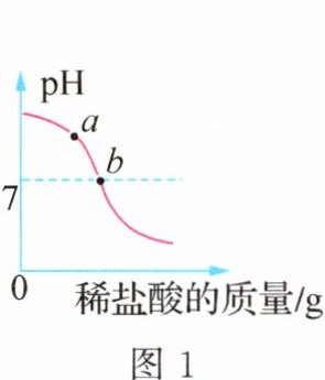 7. 新素养 科学思维 (2024·河南漯河模拟)稀盐酸和氢氧化钠溶液发生中和反应时的$pH$变化曲线如图1所示,在滴加稀盐酸的过程中某时刻的粒子变化如图2所示,请回答下列问题。