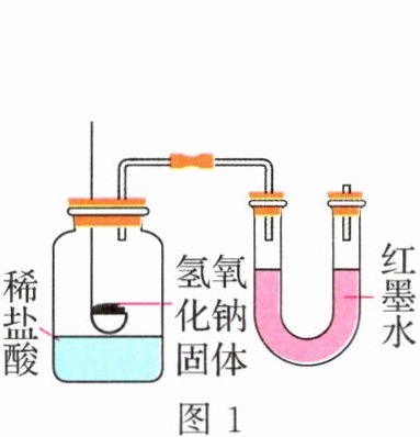 (1)如图1所示,将氢氧化钠固体放入稀盐酸中,观察到$U$形管中右侧红墨水液面上升,该现象不能证明氢氧化钠与稀盐酸发生了化学反应,理由是________________________。