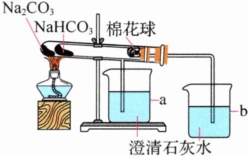 (1)加热一段时间后,a、b两烧杯内分别看到的现象是______________________________;由此可得出的结论是______________________________。