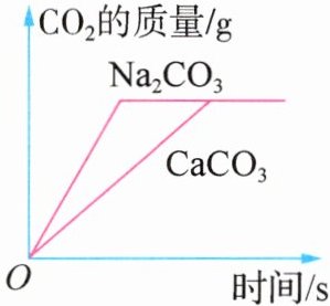8. 将等质量的CaCO₃(块状)和Na₂CO₃(粉末)分别浸入一定量10%的盐酸和10%的硫酸中,生成CO₂的质量随时间变化的曲线如右下图所示,下列说法正确的是 ( )