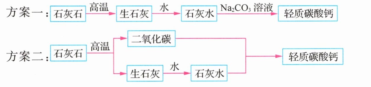 10. 石灰石(主要成分是CaCO₃)是一种常见的矿石,开发价值较高。其中之一是以石灰石为原料生产轻质碳酸钙(一种极细的粉末),可作为牙膏中的摩擦剂和化妆品的一种原料。某学校研究性学习小组为某厂设计了下列两套方案。