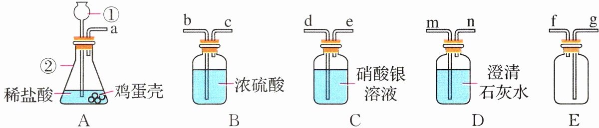 6. 某同学做“证明鸡蛋壳的主要成分是碳酸盐,并收集纯净干燥的气体”的实验,设计了下图方案进行实验(制得的 CO₂中常含有 HCl 和水蒸气)。