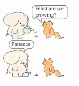 1. B 【解析】根据图片中大象和狐狸的对话“What are we growing?”和“Patience.”可知,大象认为种植植物时需要有耐心。
