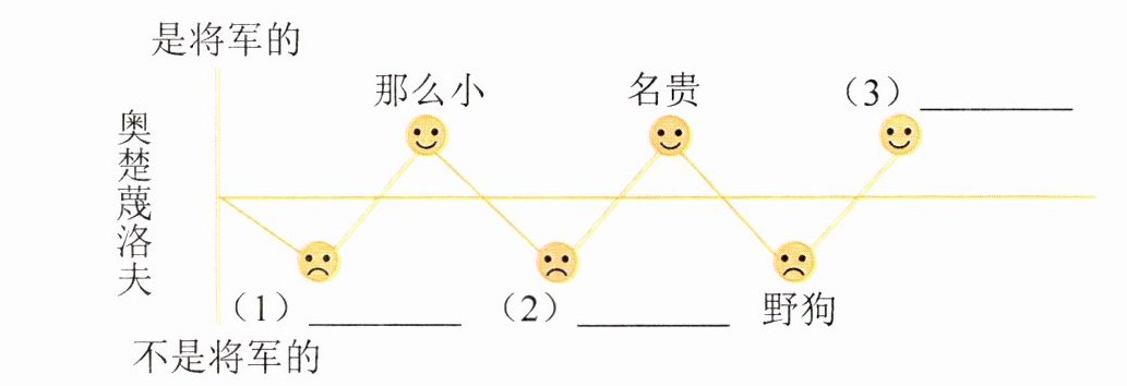 4. 新考法 思维导图 随着“狗的主人”的改变,奥楚蔑洛夫对小狗的“称谓”也在改变。请根据下图提示,把空缺处补充完整。