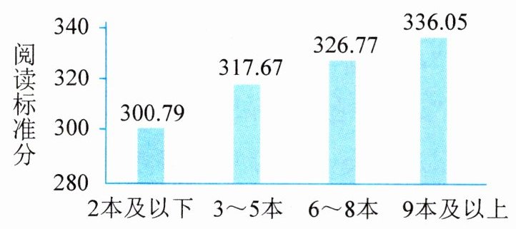 (1)课外读物读得越多,阅读标准分越高。(2)徽标的主要组成元素有一本打开的书、一支竖起的钢笔和一轮齿轮形状的太阳,这三者共同构成了汉字“书”的形状。寓意读书能让生活充满光明、希望和动力。(3)D 【解析】(2)解答本题,首先观察徽标由哪些元素构成,然后分析其中的寓意。意思对即可。(3)该项表达的是对自然风光的喜爱与赞美,与读书无关。