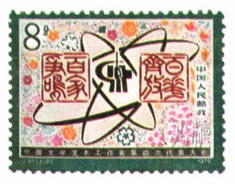 10. 中国书法有篆、隶、草、楷、行五种主要书体。篆书风格古朴,笔画繁复;隶书蚕头雁尾,一波三折;草书结构简省,纵任狂放;楷书笔画平直,规矩端正;行书书写快捷,潇洒飘逸。右边这枚邮票上有两方印章,印章上的文字属于哪种书体?如此具有魅力的书法作品体现了文中哪些观点?